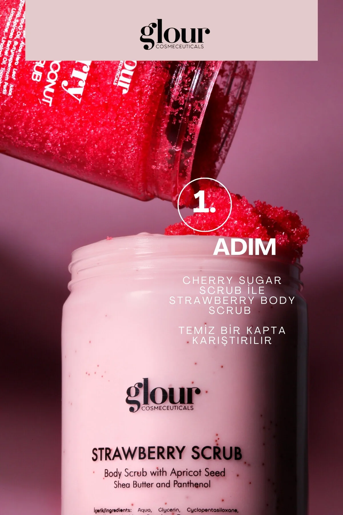 2'li Set Cherry Coconut Sugar Scrub & Strawberry Scrub | Selülit, Çilek Bacak, Batık Giderici