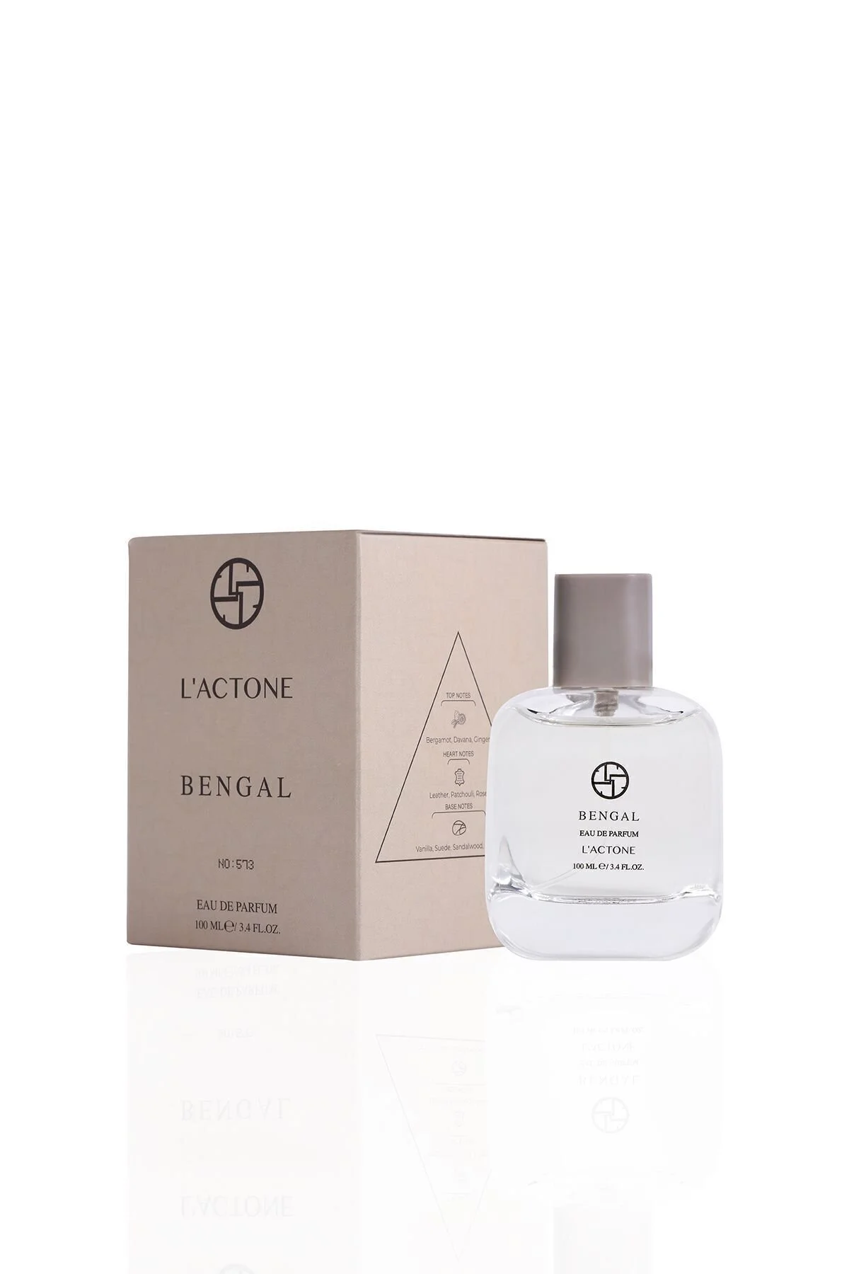 L'ACTONE 100ML Parfüm Bengal, egzotik ve etkileyici bir koku profili sunar.; Üst notalarında bergamot, davana ve zencefilin enerjik ve taze etkisi, başlangıcı dinamik ve canlandırıcı kılar.; Orta notalarda deri, paçuli ve gül, sofistike ve zengin bir kalp oluşturur, parfüme derinlik ve cazibe katar.; Alt notalarda vanilya, süet, sandal ağacı ve amberin birleşimi, sıcak ve kalıcı bir iz bırakır, zarif ve etkileyici bir kapanış sağlar.; Kullanım ve Avantajlar: Nasıl Kullanılır:Temiz ve kuru cilde, nabız noktalarına (boyun, bilek) uygulayın.; Gün boyunca etkili ve çekici bir koku deneyimi için gerektiğinde tekrar uygulayabilirsiniz.; ; Dinamik ve Enerjik:Bergamot, davana ve zencefil, parfüme dinamik ve enerjik bir açılış sağlar, taze ve canlı bir etki yaratır.; ; Sofistike ve Zengin:Deri, paçuli ve gül, parfüme sofistike ve zengin bir kalp notası kazandırır, etkileyici ve çekici bir aroma sunar.; ; Sıcak ve Kalıcı:Vanilya, süet, sandal ağacı ve amber, güçlü ve uzun süre kalıcı bir etki sağlar, sıcak ve zarif bir iz bırakır.; ; Egzotik ve Etkileyici:Bengal, egzotik ve etkileyici bir parfüm arayanlar için ideal bir seçimdir, hem günlük kullanım hem de özel etkinlikler için uygundur.; ; Şık Şişe Tasarımı:Estetik ve zarif şişe tasarımı, parfümü hem kullanışlı hem de görsel olarak çekici hale getirir, kişisel bakım rutininizi tamamlar.; ; Bergamot, davana ve zencefilin enerjik etkisiyle taze bir açılış yapar.; Deri, paçuli ve gül, sofistike ve zengin bir kalp notası sunar.; Vanilya, süet, sandal ağacı ve amber, sıcak ve kalıcı bir kapanış sağlar, egzotik ve etkileyici bir koku deneyimi sunar.