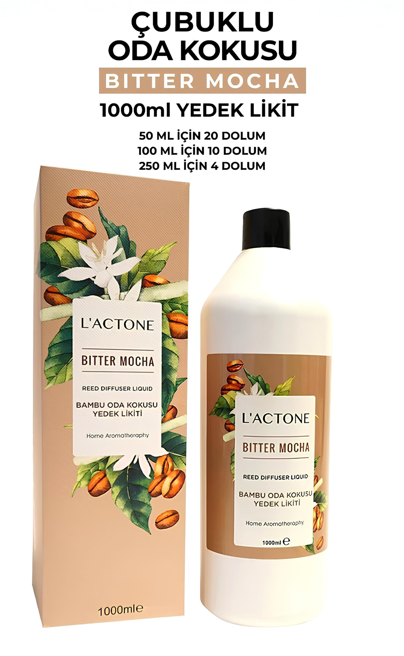- Bitter Mocha aroması ile zengin ve yoğun bir koku deneyimi sunar, kahve severlerin beğenisine sunulur.; - 1000 ml'lik ambalajı sayesinde uzun süreli kullanım imkanı sağlar, sık sık yeniden satın alma ihtiyacını azaltır.; - Bambu yedek likiti, dayanıklı ve çevre dostu bir ambalaj malzemesi kullanarak sürdürülebilirlik ilkesine katkıda bulunur.; - Oda kokusu olarak tasarlanmıştır; evinizin atmosferini canlandırarak hoş bir koku ortamı yaratır.
