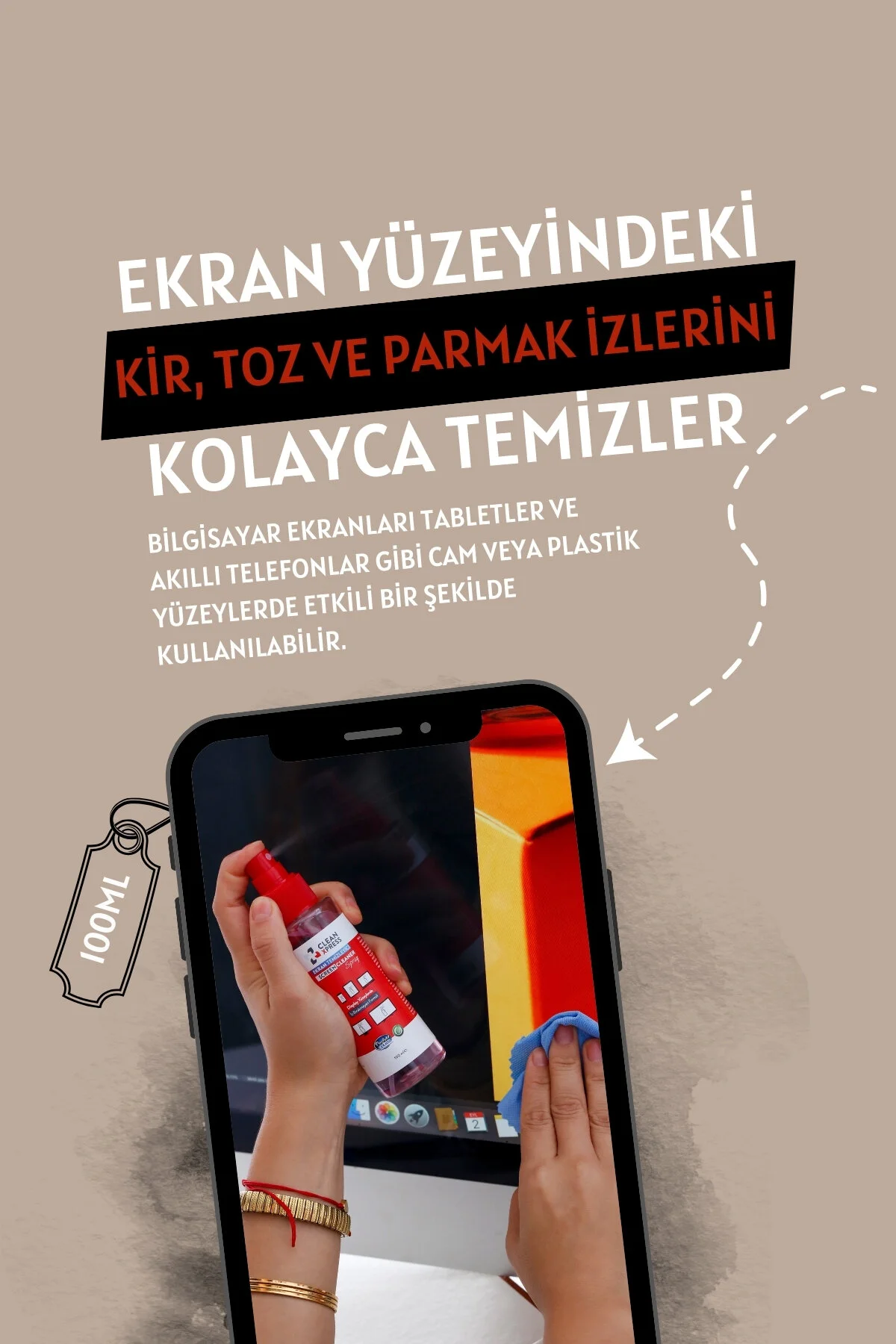 Ekranlarınızdaki kir ve lekeleri hızlıca temizlemek için ideal çözüm! Clean Xpress Ekran Temizleyici Sprey 100 ML, genişletilmiş hacmiyle etkili ve pratik temizlik sağlar, ekranlarınızı her zaman parlak ve net tutar.; Ürün Özellikleri: Ürün Tipi:Ekran Temizleyici Sprey.; Tüm ekran türleri için uygundur, güvenle kullanılabilir.; ; Miktar:100 ML.; Genişletilmiş hacmi sayesinde uzun süreli kullanım sunar, evde veya ofiste ihtiyacınıza uygun miktarda ürün sağlar.; ; Formül:Hassas ve etkili temizleme formülü.; Ekran yüzeyindeki toz, kir ve parmak izlerini etkili bir şekilde temizler, ekranların temiz ve parlak görünmesini sağlar.; ; Kullanım Alanı:Bilgisayar monitörleri, dizüstü bilgisayar ekranları, tabletler, akıllı telefonlar ve diğer cam veya plastik ekran yüzeylerinde kullanıma uygundur.; ; Avantajlar: Etkili Temizlik:Özel formülü, ekran yüzeyindeki kir ve lekeleri kolayca temizler ve ekranların netliğini artırır.; Ekranlarınızda iz bırakmadan temizleme sağlar.; ; Büyük Hacim:100 ML’lik büyük boyut, sık kullanımlar için idealdir ve daha az sıklıkta yeniden satın almanıza olanak tanır.; ; Güvenli İçerik:Kimyasal içermeyen, ekran yüzeylerine zarar vermeyen formül.; Ekranlarda çizilmelere veya solmalara neden olmaz.; ; Kompakt ve Kullanışlı:Şişe tasarımı, kullanımı kolaylaştırır.; Sprey formu sayesinde ekranınıza eşit şekilde uygulayabilir, hızlı ve etkili temizlik yapabilirsiniz.; ; Nasıl Kullanılır? Ekranın kapalı ve soğuk olduğundan emin olun.; ; Spreyi ekran yüzeyine birkaç kez sıkın.; ; Temiz ve yumuşak bir mikrofiber bezle ekranı nazikçe silin.; ; Temizlik işlemi tamamlandıktan sonra ekranın tamamen kurumasını bekleyin.; ; Kullanım Süresi:Ürünün etkisi ekranın büyüklüğüne ve kirlenme durumuna bağlı olarak değişir.; Bir şişe, uzun süreli ve sık kullanım sağlar.