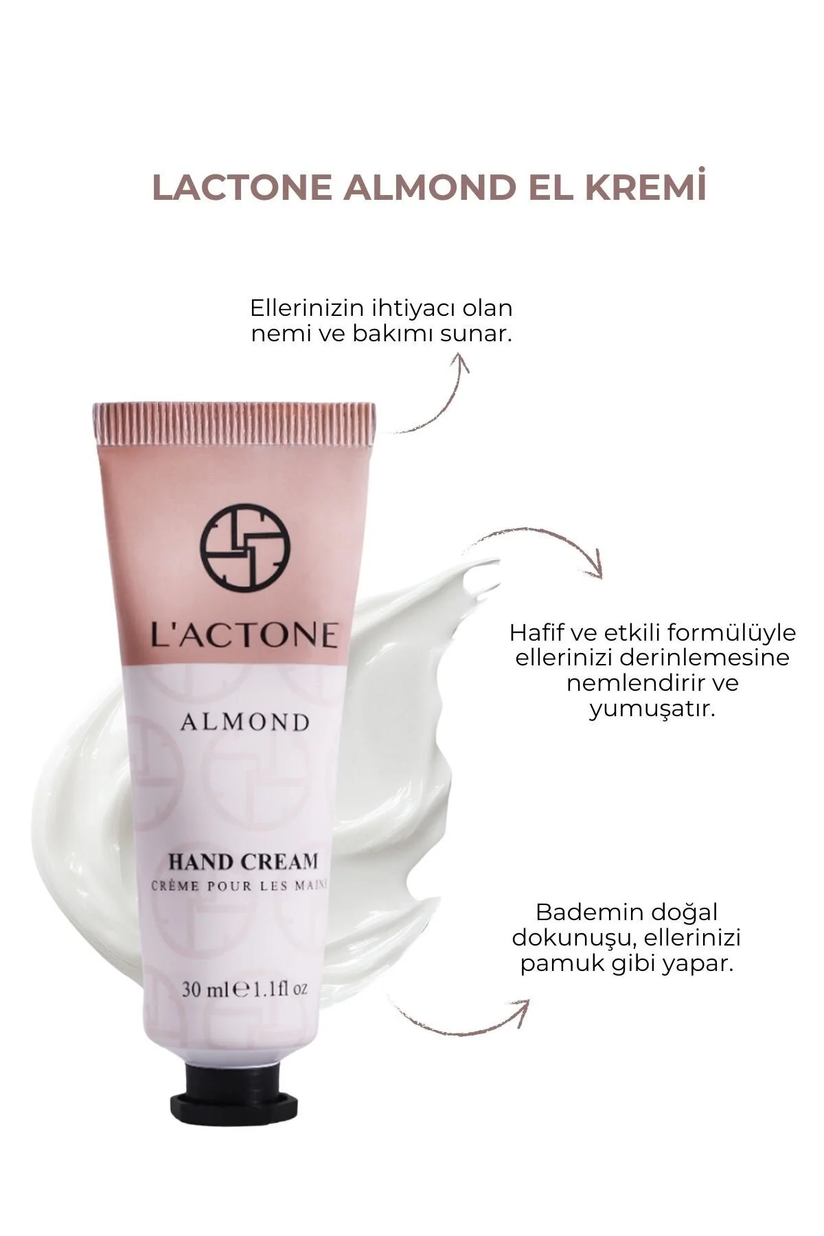 LACTONE Coconut + Almond + Vanilla Desire El Kremi Seti LACTONE Coconut + Almond + Vanilla Desire El Kremi Seti, ellerinizi şımartacak ve cildinizi derinlemesine besleyecek üç lezzetli kokulu el kreminden oluşan mükemmel bir koleksiyondur.; Bu set, hem nemlendirici özellikleri hem de zengin aromalarıyla gününüze neşe katacak! Ürün Özellikleri: 1. Coconut El Kremi: - Tropikal Ferahlık: Hindistan cevizi özleriyle zenginleştirilmiş formülü, cildinizi derinlemesine nemlendirir ve tropikal bir ferahlık sunar.; - Yumuşaklık:** Cildinizi yumuşak ve pürüzsüz hale getirerek, tatlı bir bakım deneyimi yaşatır.; 2. Almond El Kremi: - Besleyici Özellikler: Badem yağı, cildin nem dengesini sağlarken, hafif yapısı sayesinde hızla emilir.; - Nazik Dokunuş: Ciltteki hassasiyetleri yatıştırarak, pürüzsüz bir doku kazandırır ve günlük kullanıma uygundur.; 3. Vanilla Desire El Kremi: - Sıcak ve Çekici Koku: Vanilyanın tatlı ve sıcak notaları, ruh halinizi iyileştirir ve sizi sarar.; - Derinlemesine Nem: Zengin formülü sayesinde, cildinizi besler ve yumuşaklık sağlar.; Neden LACTONE El Krem Seti? - Üç Harika Koku: Hindistan cevizi, badem ve vanilya aromalarıyla, her kullanımda farklı bir deneyim sunar.; - Hızla Emilim: Kremler, yağlı bir his bırakmadan hızla emilir ve cildinizi anında rahatlatır.; - Günlük Kullanıma Uygun: Pratik boyutlarıyla her an yanınızda taşıyabileceğiniz el kremleri, istediğiniz zaman cilt bakımınızı yapmanızı sağlar.; Kullanım Şekli: - El kreminden yeterli miktarda alın ve temiz, kuru ellere nazikçe uygulayın.; Özellikle tırnak çevresi ve parmak aralarına masaj yaparak yedirin.; Gün boyunca ihtiyaç duydukça tekrarlayın.; LACTONE Coconut + Almond + Vanilla Desire El Kremi Seti, ellerinize hem bakımı hem de keyfi bir arada sunacak! Kendinize veya sevdiklerinize hediye etmek için harika bir seçenek.