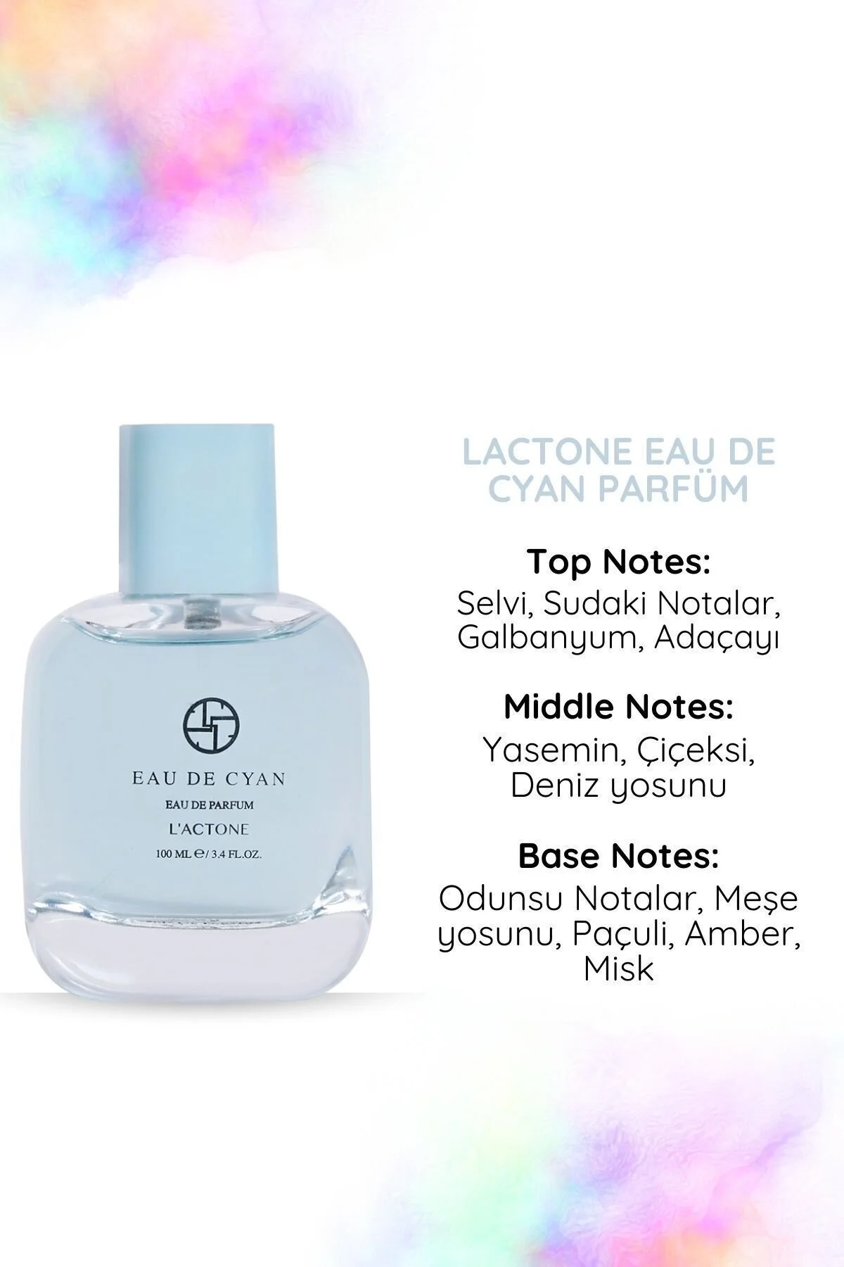 L'ACTONE 100ML Parfüm Eau de Cyan, doğal ve ferah bir koku deneyimi sunar. Üst notalarında selvi, sudaki notalar ve galbanyumun hafif ve temiz etkisi, ilk temasında ferahlatıcı bir açılış sağlar. Orta notalarda adaçayı, yasemin ve çiçeksi deniz yosunu, parfüme zarif ve doğal bir derinlik katar. Alt notalarda odunsu notalar, meşe yosunu, paçuli, amber ve misk, güçlü ve kalıcı bir iz bırakır, sıcak ve zengin bir kapanış sağlar. Kullanım ve Avantajlar: Nasıl Kullanılır:Temiz ve kuru cilde, nabız noktalarına (boyun, bilek) uygulayın. Gün boyu taze ve ferah bir koku için gün içinde tekrar edebilirsiniz. ; Ferahlatıcı Açılış:Selvi, sudaki notalar ve galbanyum, parfüme ferah ve hafif bir açılış sağlar, taze ve rahatlatıcı bir etki yaratır. ; Zarif ve Doğal:Adaçayı, yasemin ve çiçeksi deniz yosunu, parfüme zarif ve doğal bir kalp notası kazandırır, doğanın sakinleştirici etkisini yansıtır. ; Sıcak ve Kalıcı:Odunsu notalar, meşe yosunu, paçuli, amber ve misk, güçlü ve kalıcı bir etki sağlar, sıcak ve zengin bir iz bırakır. ; Doğal ve Şık:Eau de Cyan, doğal ve şık bir koku arayanlar için mükemmel bir tercihtir, hem günlük kullanım hem de özel anlar için uygundur. ; Estetik Şişe Tasarımı:Zarif şişe tasarımı, parfümü hem estetik hem de kullanışlı kılar, kişisel bakım rutininizi tamamlar. ; Selvi, sudaki notalar ve galbanyumun ferah açılışı, adaçayı, yasemin ve çiçeksi deniz yosununun zarif kalbi ile birleşir. Odunsu notalar, meşe yosunu, paçuli, amber ve misk, sıcak ve kalıcı bir kapanış sağlar, doğal ve etkileyici bir koku deneyimi sunar.