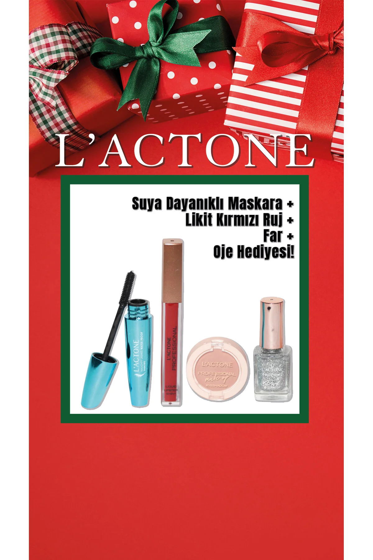 L’ACTONE Yılbaşına Özel 3’lü Seti – Waterproof Maskara & Likit Shine Ruj & Far + Oje Hediye