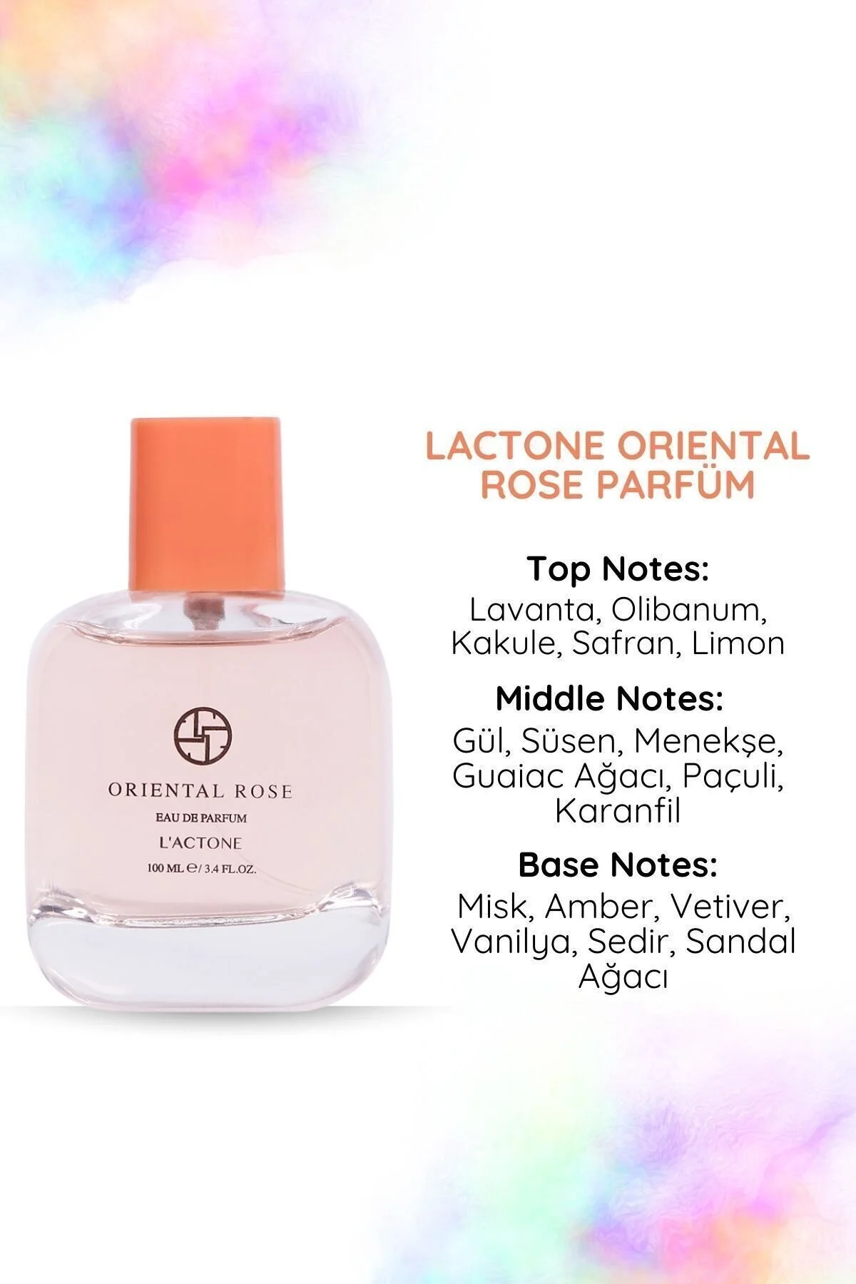 L'ACTONE 100ML Parfüm Oriental Rose, zengin ve egzotik bir parfüm deneyimi sunar. Üst notalarında lavanta, olibanum, kakule, safran ve limonun birleşimi, taze ve baharatlı bir açılış sağlar. Orta notalarda gül, süsen, menekşe, guaiac ağacı, paçuli ve karanfilin harmonik karışımı, parfüme derin ve çiçeksi bir karakter kazandırır. Alt notalarda misk, amber, vetiver, vanilya, sedir ve sandal ağacının birleşimi, kalıcı ve sofistike bir kapanış sunar. Kullanım ve Avantajlar: Nasıl Kullanılır:Temiz ve kuru cilde, nabız noktalarına (boyun, bilek) hafifçe uygulayın. Gün boyunca etkisini artırmak için ihtiyaç duydukça yeniden uygulayabilirsiniz. ; Taze ve Baharatlı Açılış:Lavanta, olibanum, kakule, safran ve limonun birleşimi, enerjik ve ferah bir başlangıç sunar. ; Çiçeksi ve Derin Orta Notalar:Gül, süsen, menekşe, guaiac ağacı, paçuli ve karanfilin harmonik karışımı, parfüme zengin bir çiçeksi ve odunsu derinlik katar. ; Sofistike ve Kalıcı Kapanış:Misk, amber, vetiver, vanilya, sedir ve sandal ağacının birleşimi, kalıcı ve etkileyici bir kapanış sağlar. ; Şık Şişe Tasarımı:Modern ve estetik şişe tasarımı, parfümü kişisel bakım rutininizin zarif bir parçası yapar. ; Özel Anlar İçin:Oriental Rose, özel etkinlikler ve akşam davetleri için mükemmel bir tercihtir, kendinizi ve çevrenizi etkileyici bir koku ile sarar. ; Lavanta, olibanum, kakule, safran ve limonun taze açılışı, gül, süsen, menekşe, guaiac ağacı, paçuli ve karanfilin çiçeksi ve odunsu derinliğiyle birleşir. Misk, amber, vetiver, vanilya, sedir ve sandal ağacının zengin kapanışı, kalıcı ve etkileyici bir parfüm deneyimi sunar.