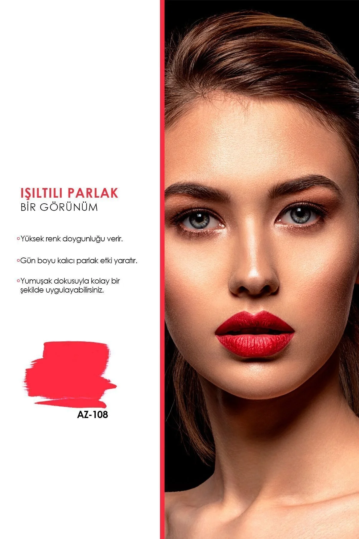 Lipstick Shine Red Arizona Az-108 / Kırmızı Parlak Ruj - 1 Adet Oje Hediyeli