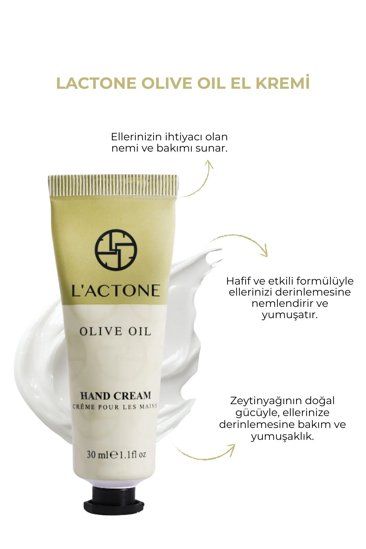 Zeytinyağının saf ve doğal dokunuşu cildinizi yumuşatarak sizi Akdeniz'in sakin zeytinliklerine götürüyor; Her kullanımda sanki elleriniz zeytin ağaçlarının altında dinleniyormuş gibi hissedersiniz; Lactone'un özel formülü cildinizi derinlemesine nemlendirip besler, her uygulamada ipeksi pürüzsüz bir dokunuş bırakır; Zeytinyağının sembolik anlamı, sağlık ve doğal güzellik, Lactone Zeytinyağlı El Kremi ile günlük yaşamınıza taşınıyor; Şimdi bu özel kremin büyüsünü ellerinizde yaşayın ve zeytinyağının doğadan gelen saf dokunuşunu gün boyu yanınızda taşıyın.