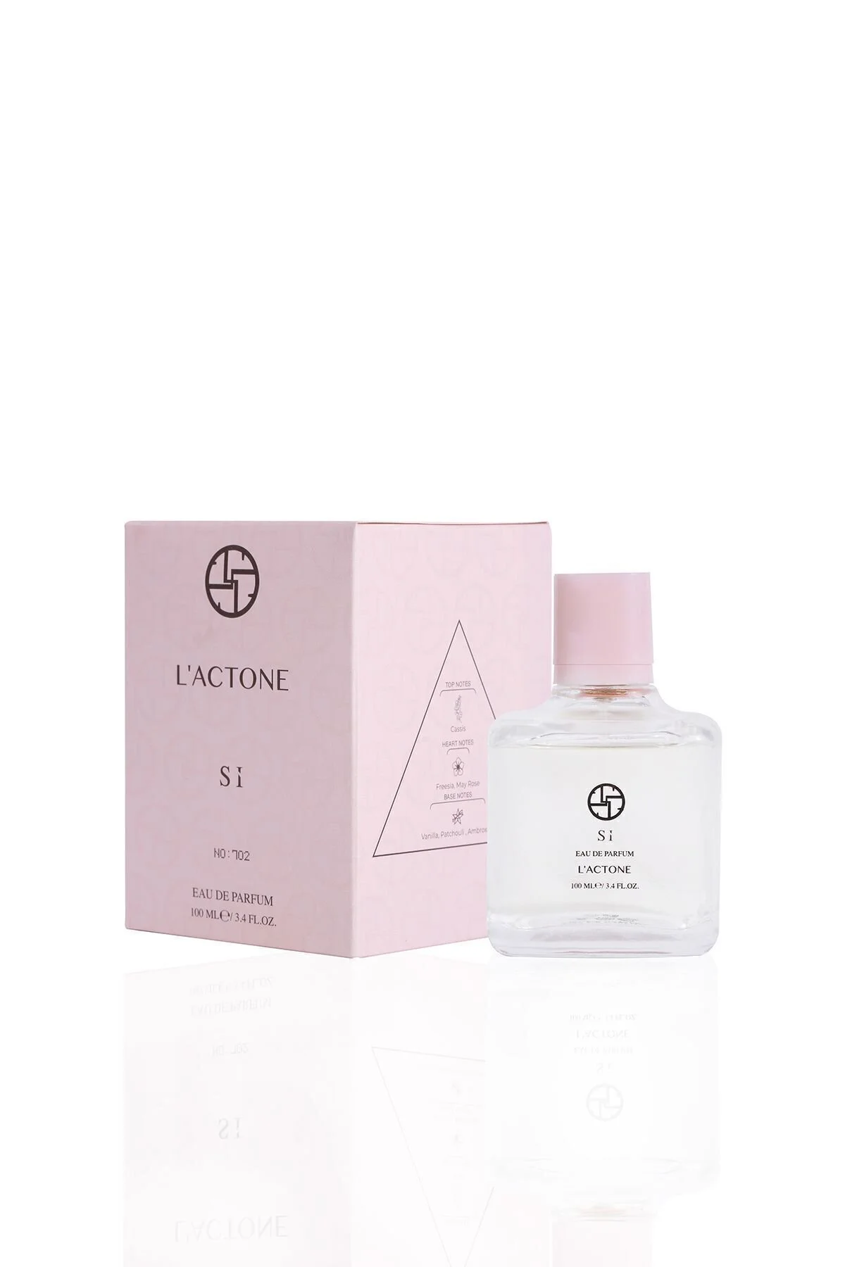 L'ACTONE 100ML Parfüm Si, zarif ve sofistike bir koku arayanlar için mükemmel bir seçim.; Bergamot ve mandalinanın tazeleyici üst notaları, siyah frenk üzümünün tatlı ve meyvemsi dokunuşuyla birleşerek, ilk anda büyüleyici bir etki yaratır.; Orta notalarda frezya, neroli ve yaseminin çiçeksi ve romantik aromaları parfüme zarafet katar.; Paçuli, odunsu kokular, amber ve vanilyanın derinliği, ambroxan ile zenginleşerek kalıcı ve unutulmaz bir iz bırakır.; Bu özel bileşim, kendine güvenen, modern ve sofistike kadınlar için tasarlanmıştır.; Kullanım ve Avantajlar: Nasıl Kullanılır:Parfümü temiz cilde, özellikle nabız noktalarına (boyun, bilek, kulak arkası) 15-20 cm mesafeden sıkın.; Gün içerisinde tazelenmek için tekrarlayın.; ; Kalıcı ve Etkileyici:Zengin içeriği sayesinde tüm gün boyunca kalıcıdır ve etrafınızdakilerde derin bir izlenim bırakır.; ; Doğal ve Romantik:Çiçeksi ve meyvemsi notalar, sizi zarif ve çekici hissettirir.; ; Her Duruma Uygun:Hem gündüz hem de gece kullanımı için idealdir, şıklığınızı her ortamda tamamlar.; ; Ciltle Uyumlu:Hassas ciltler için uygun formülü ile cildinizde yumuşak ve rahat bir his bırakır.; ; Pozitif Etkiler:Bergamot ve mandalinanın ferahlatıcı etkisi, gün boyu enerjinizi yükseltir, vanilya ve amberin sıcak dokunuşları ise rahatlatıcı bir etki sağlar.; ; Şık Tasarım:Zarif şişe tasarımı, parfümünüzü her zaman yanınızda taşımanızı kolaylaştırır ve stilinizi tamamlar.; ; L'ACTONE Si ile zarafetinizi ve çekiciliğinizi ön plana çıkarın, her adımda fark yaratın!
