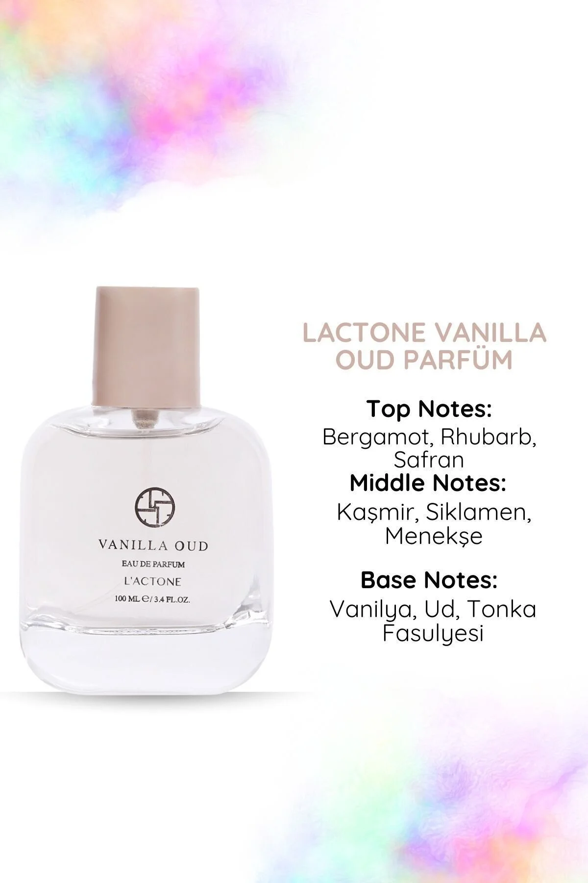 L'ACTONE 100ML Parfüm Vanilla Oud, zarif ve etkileyici bir parfüm deneyimi sunar.; Üst notalarda bergamot, rhubarb ve safranın taze ve baharatlı birleşimi, enerjik bir başlangıç sağlar.; Orta notalarda kaşmir, siklamen ve menekşenin sofistike ve çiçeksi harmanı, parfüme derinlik ve zarafet katar.; Alt notalarda vanilya, ud ve tonka fasulyesinin sıcak ve odunsu birleşimi, kalıcı ve etkileyici bir kapanış sağlar.; Kullanım ve Avantajlar: Nasıl Kullanılır:Temiz ve kuru cilde, nabız noktalarına (boyun, bilek) hafifçe uygulayın.; Gün boyunca etkisini artırmak için ihtiyaç duydukça yeniden uygulayabilirsiniz.; ; Taze ve Baharatlı Üst Notalar:Bergamot, rhubarb ve safranın enerjik ve ferah birleşimi, dinamik bir başlangıç sunar.; ; Sofistike Çiçeksi Orta Notalar:Kaşmir, siklamen ve menekşenin zarif harmanı, parfüme derinlik ve zarafet katar.; ; Sıcak ve Odunsu Alt Notalar:Vanilya, ud ve tonka fasulyesinin uyumlu birleşimi, uzun süre kalıcı ve etkileyici bir kapanış sağlar.; ; Şık Şişe Tasarımı:Modern ve estetik şişe tasarımı, parfümü kişisel bakım koleksiyonunuzun zarif bir parçası yapar.; ; Günlük ve Özel Anlar İçin:Vanilla Oud, hem günlük kullanım hem de özel etkinlikler için mükemmel bir tercihtir, kendinizi ve çevrenizi sofistike bir koku ile sarmalar.; ; Vanilla Oud, zarif ve etkileyici notalarıyla unutulmaz bir parfüm deneyimi sunar, her anınızı özel kılar.