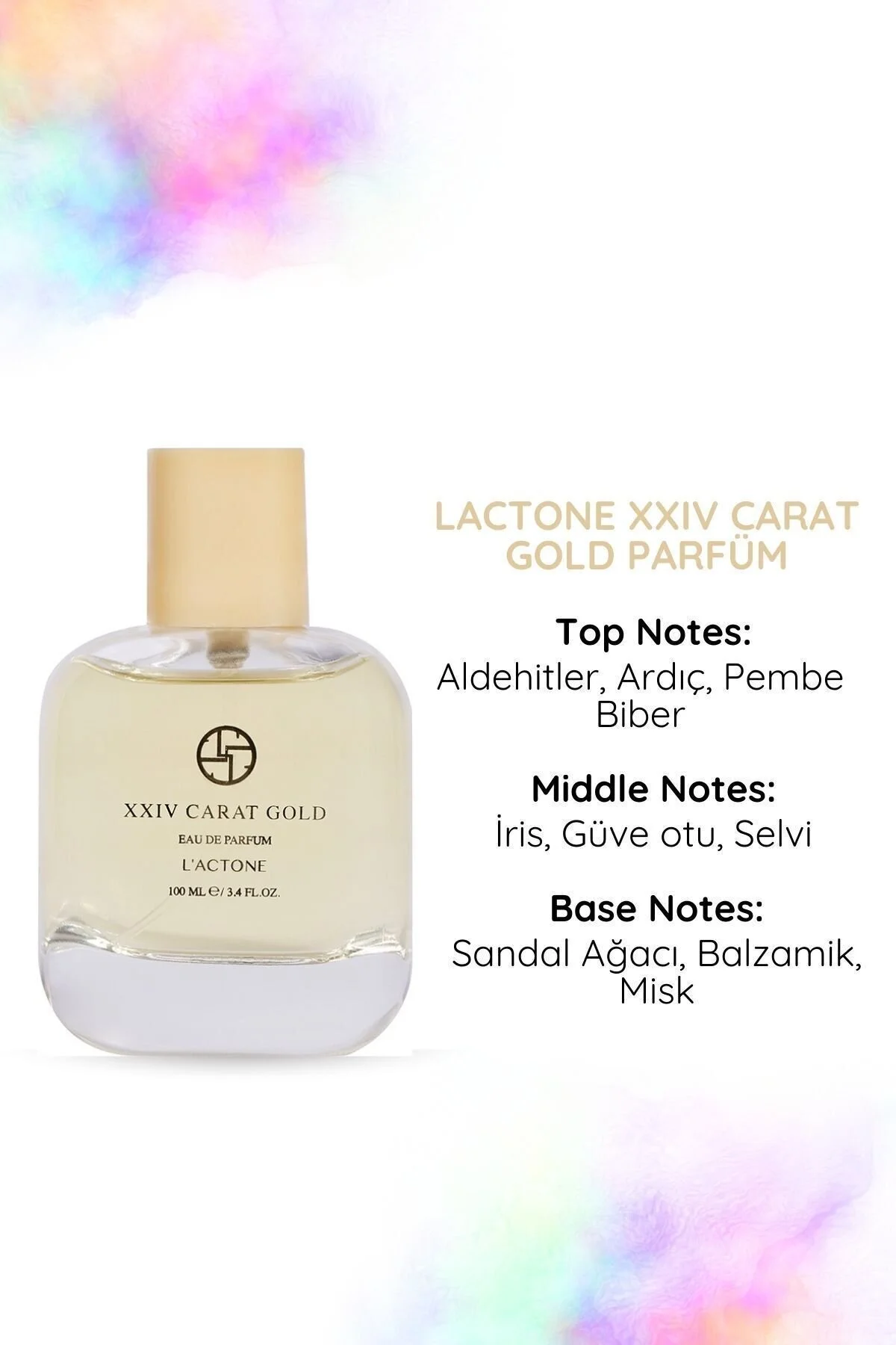 L'ACTONE 100ML Parfüm XXIV Carat Gold, lüks ve zarafetin mükemmel bir birleşimidir.; Üst notalarındaki aldehitler, ardıç ve pembe biber, enerjik ve canlı bir açılış sağlar.; Orta notalarda iris, güve otu ve selvi, parfüme sofistike ve derin bir karakter kazandırır.; Alt notalarda sandal ağacı, balzamik misk ve odunsu notalar, kalıcı ve zengin bir kapanış sunar.; Kullanım ve Avantajlar: Nasıl Kullanılır:Temiz ve kuru cilde, nabız noktalarına (boyun, bilek) hafifçe uygulayın.; Gün boyu etkisini korumak için ihtiyaç duydukça yeniden uygulayabilirsiniz.; ; Enerjik Açılış:Aldehitler, ardıç ve pembe biberin dinamik kombinasyonu, ferahlatıcı ve enerjik bir başlangıç sağlar.; ; Sofistike Kalp Notaları:Iris, güve otu ve selvi, parfüme zarif ve sofistike bir derinlik katar, zarif ve etkileyici bir aura oluşturur.; ; Kalıcı Kapanış:Sandal ağacı, balzamik misk ve odunsu notalar, sıcak ve kalıcı bir iz bırakır, gün boyunca etkileyici bir koku sağlar.; ; Lüks ve Zarif:XXIV Carat Gold, özel anlar ve lüks bir parfüm deneyimi arayanlar için mükemmel bir tercihtir, şık ve zarif bir izlenim bırakır.; ; Estetik Şişe Tasarımı:Şık ve zarif şişe tasarımı, parfümü hem estetik hem de kullanışlı kılar, kişisel bakım rutininizi tamamlar.; ; Aldehitlerin, ardıç ve pembe biberin enerjik açılışı, iris, güve otu ve selvinin sofistike kalbiyle birleşir.; Sandal ağacı, balzamik misk ve odunsu notalar, kalıcı ve zengin bir kapanış sağlar, lüks ve etkileyici bir koku deneyimi sunar.